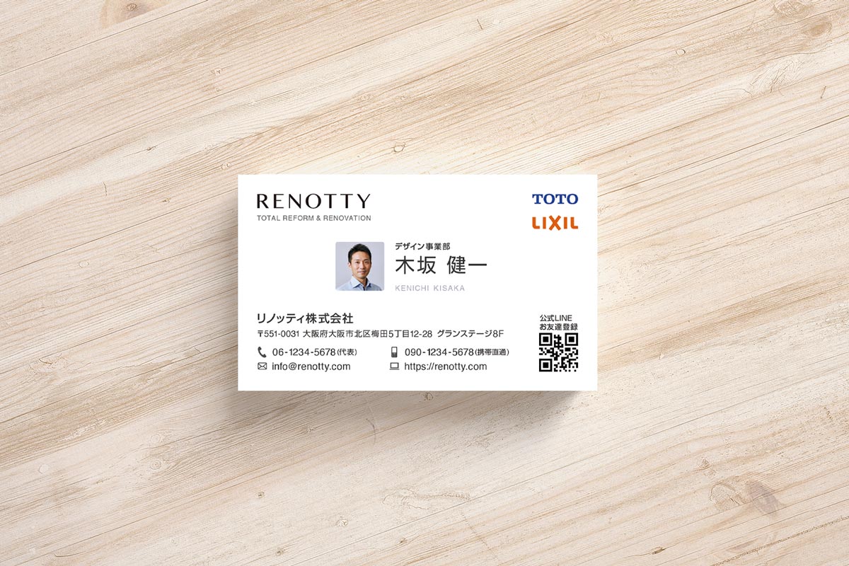 渡す側にとっては、施工品質と世界観を一枚で伝えられる名刺であり、初対面の場でも自信を持って差し出せるツールとなります。控えめながら上品なデザインが、信頼出来るリフォーム会社として仕事の丁寧さを体現しています。